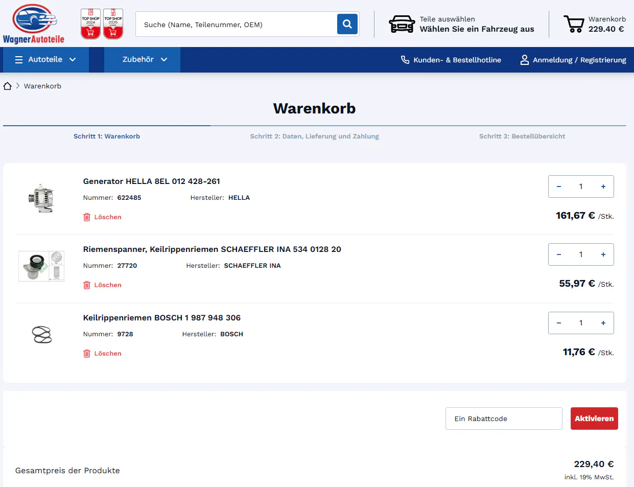 De dynamo van mijn auto is onderweg in Duitsland kapot gegaan; ik ben gestrand en kon niet verder rijden. Het garagebedrijf (ATU) heeft mijn auto gerepareerd, maar na betaling ben ik mij kapot geschrokken van de onderdeelprijzen. Voor het idee heb ik exact dezelfde onderdelen opgezocht bij een (Duitse) webshop. Hier kosten de onderdelen een fractie van wat ik heb moeten betalen. Ik weet wel dat de kosten van onderdelen bij een garage een stuk hoger liggen dan bij een webshop, maar is het normaal dat dit een factor 2,5 (dynamo) en 5 (multiriem en riemspanner) kan zijn? Ik heb nu bijvoorbeeld €294 moeten betalen voor een simpele riemspanner die je voor €50-70 kunt krijgen. Alvast bedankt voor de toelichting.